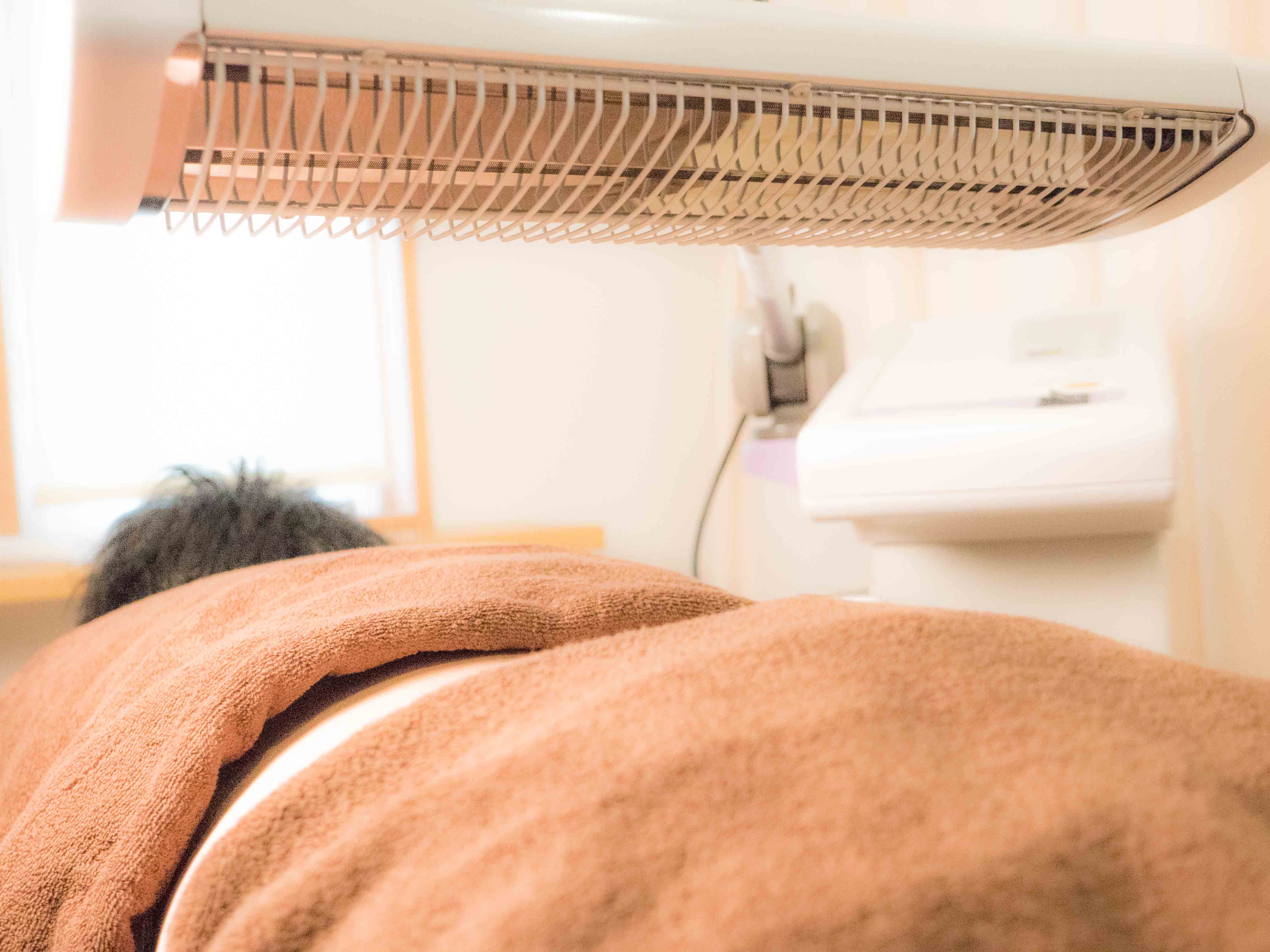 遠赤外線は、一般的な赤外線よりも穏やかで効率よく深部まで暖まり、この温熱効果により血流改善筋肉の緊張緩和、疼痛軽減が望めます。